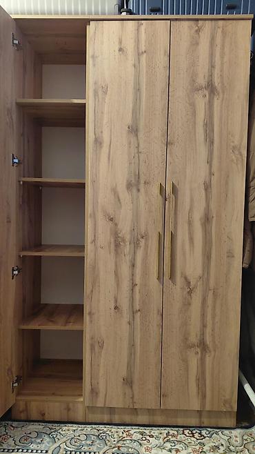 Двухстворчатый шкаф для одежды из ЛДСП с рисунком под натуральный дуб.