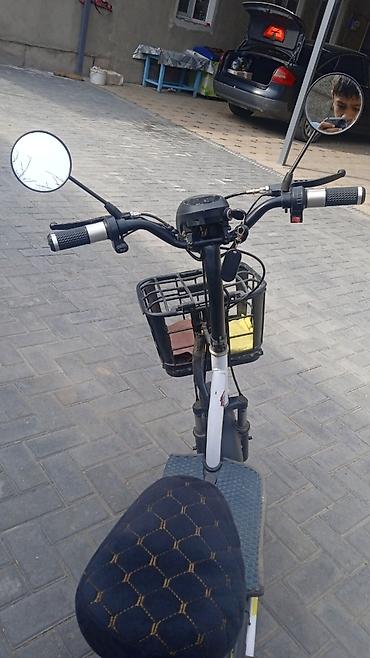 Электровелосипед/электроскутер компактного формата - Тип: городская электрическая мини‑модель с площадкой под ноги - Посадка: широкое мягкое сиденье, ровная платформа для ног - Рама: низкая, удобн...