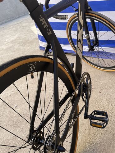 - Трансмиссия: одиночная скорость (fixed/трек), звезда спереди и трековая втулка сзади; цепь трекового типа.