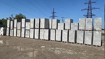 Газоблок ош шары Бетонные блоки стандартного размера, аккуратно уложенные на поддоны для удобства транспортировки и хранения. Эти блоки идеально подходят для строительства фундаментов, стен, огра...