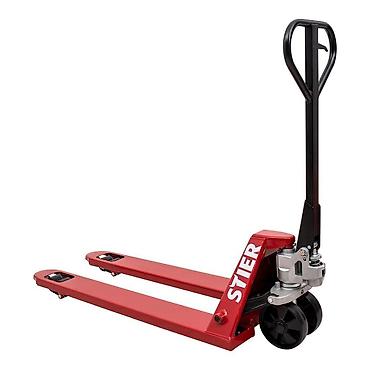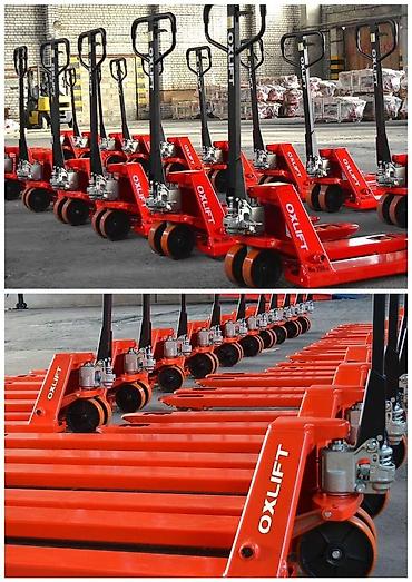 - Конструкция: прочная стальная рама, вилка стандартного формата для поддонов; эргономичная рукоятка с тремя режимами (подъём/нейтраль/опускание).