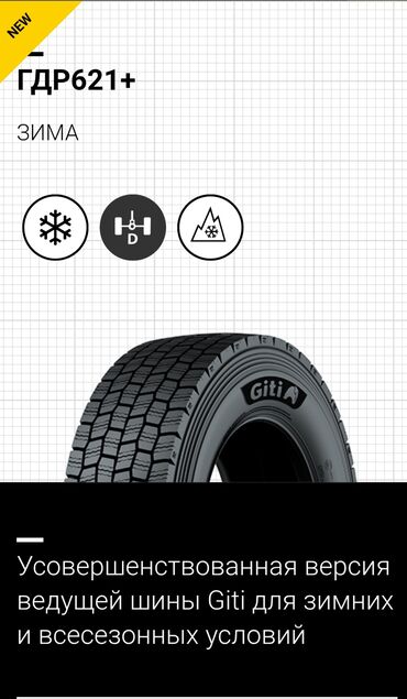 Грузовые шины Giti Модели и размеры на фото: - Giti GDR675 – 315/60 R22.5, 18PR. Направление: ведущая/универсальная ось для средне-дальних перевозок. Рисунок с массивными блоками и широкими канавк...