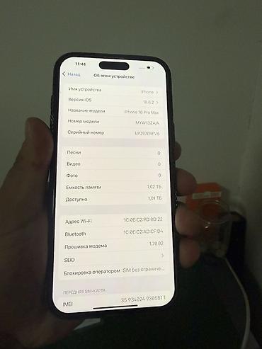 - Модель: iPhone 16 Pro Max (номер модели MYW13Z/A)