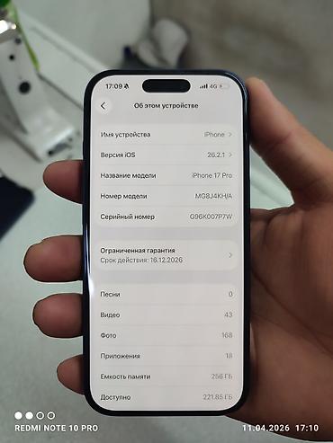 - Модель: iPhone 17 Pro (номер модели MG8J4KH/A)