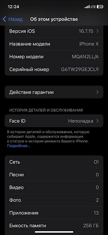 - Модель: iPhone X (модель MQAN2LL/A)