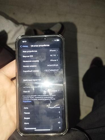 - Модель: iPhone X (MQAG2RU/A), серийный номер отображается в меню.