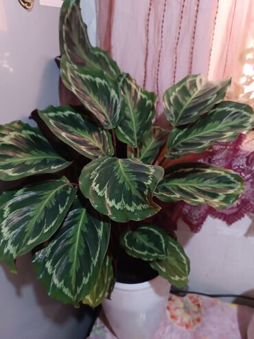 Комнатное растение калатея с характерными узорчатыми листьями. Листья