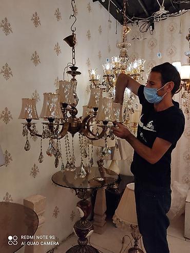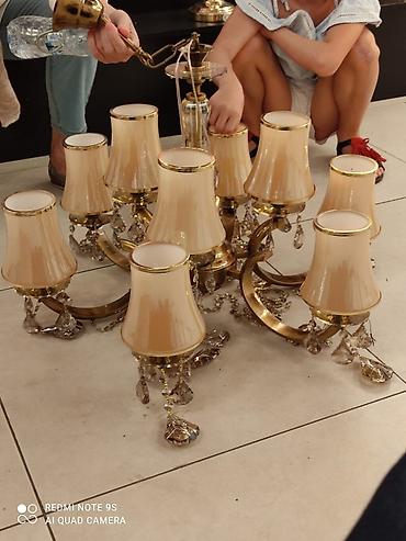 - Особенности: изогнутые декоративные держатели плафонов, окантовка абажуров в тон металлу, массивные кристаллы при дневном и искусственном освещении дают яркие блики