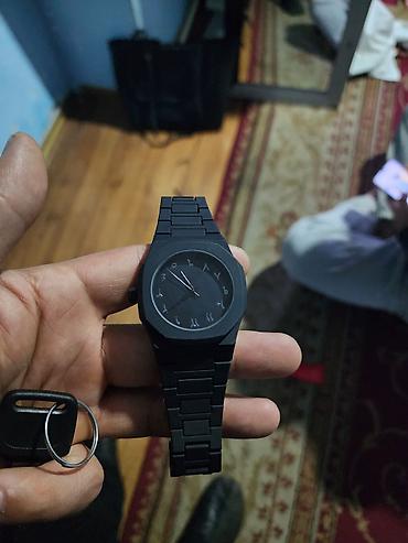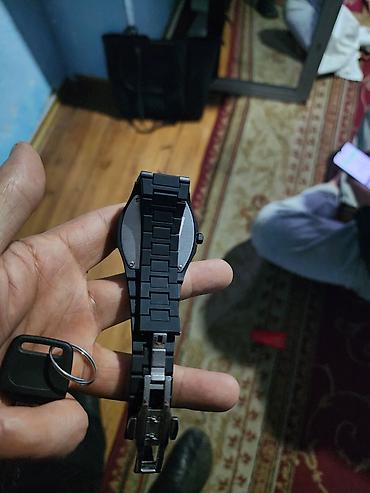 - Циферблат: черный, минималистичный, с метками-цифрами и тремя стрелками (часы, минуты, секунды).