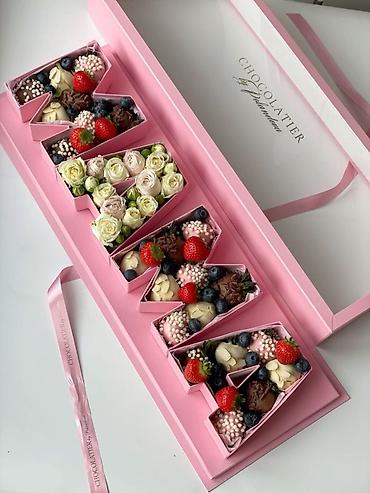- Подарочные коробки премиум-класса: формы-сердца, классические прямоугольные, а также наборы в виде объемных букв/слов. Внутри каждая ягода размещена в индивидуальных капсулах.