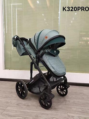 Подходит с рождения (люлька) и до возраста прогулочного использования. Модель для города и прогулок по паркам, сочетает маневренность и комфорт. На фото — комплектация и общий вид K320PRO.