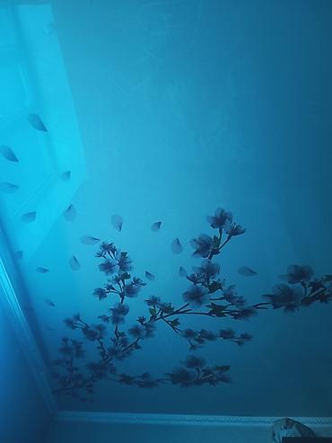 - Отделка: обои с растительным орнаментом, декоративные ниши в стене, плинтусы и потолочные карнизы. Потолок — двухуровневый с точечным освещением; в одной из комнат — натяжной потолок с фотопечатью цветущих ветвей.