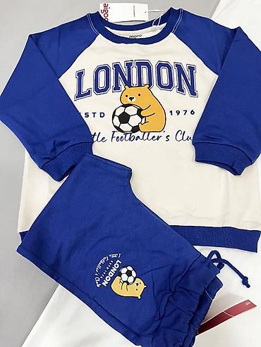 - Спортивный бело‑синий с надписью “LONDON” и мишкой с мячом