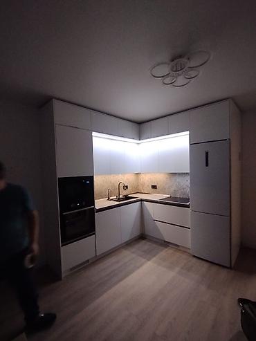 Кухонные гарнитуры на заказ - Современные линейные и угловые решения под потолок - Фасады без ручек (push-to-open/скрытые профили), ровные линии, минимализм - Материалы на выбор: ЛДСП/МДФ, матовые...