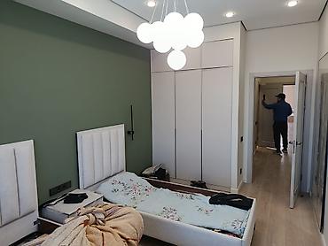 - Электрика: розетки/выключатели в едином темном исполнении, выводы под бра у изголовья, скрытая проводка.
