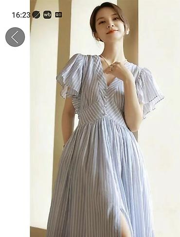 Платье-рубашка в полоску, длина миди/макси. Бренд Joleen Состояние: Покупала до беременности ни разу не носила, сейчас не по размеру ( брала за 23000 сом) - Цвет: небесно-голубой с тонкой белой в...