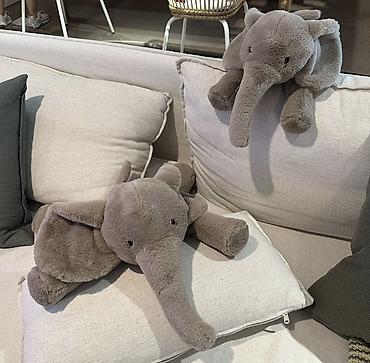 - Посадка: лапки и ушки подвижные, «слоник» легко сидит на полке, подлокотнике, подушке.