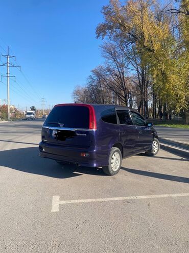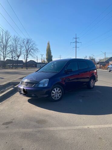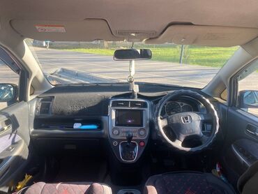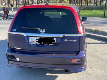 Honda Stream, компактвэн 5‑дверный, правый руль. Цвет темно‑синий (металлик). Семиместный салон с трансформацией сидений.