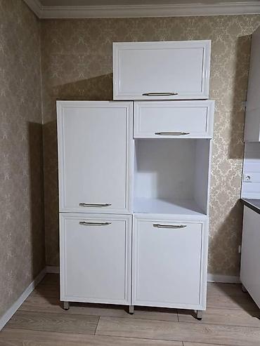 - Одна открытая ниша по центру — удобно для микроволновки, техники или декора