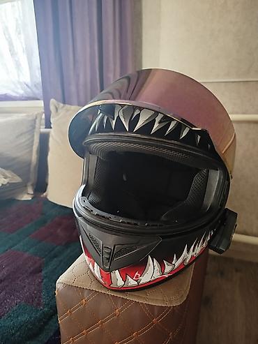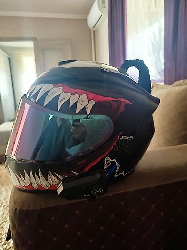 Мотошлем интеграл с авторским аэрографическим дизайном «пасть» и зеркальным визором.