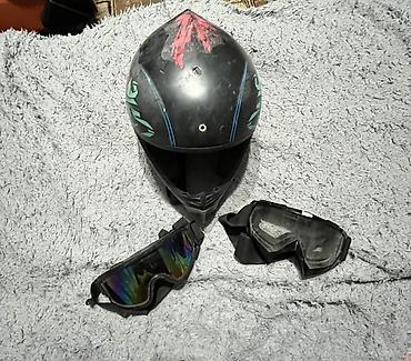 Отличный комплект для поездок по бездорожью: шлем + две сменные пары очков (зеркальная и прозрачная линзы). Размер не указан на изображениях.