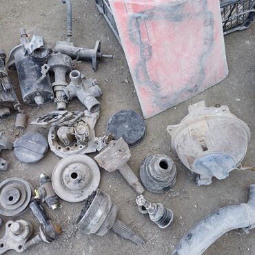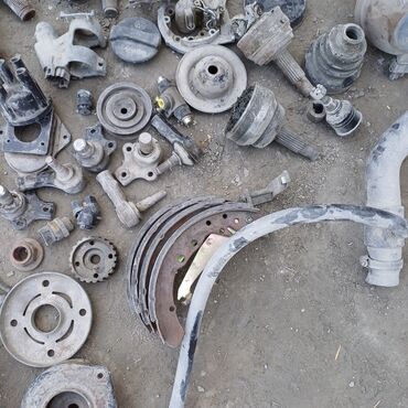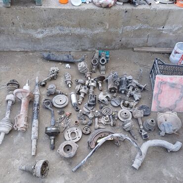 Набор б/у автозапчастей разного назначения для легковых автомобилей. В комплекте множество механических узлов и элементов подвески/трансмиссии/тормозной системы, среди видимых деталей: