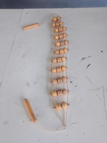 - Деревянный роликовый массажер для спины на шнуре с двумя ручками.