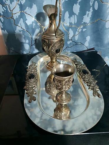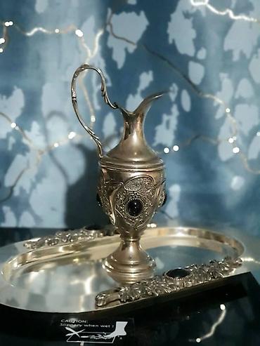 - вставки темных кабошонов по корпусам кувшина, бокалов и на подносе;