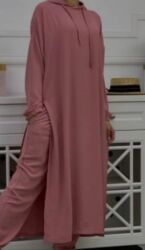 На худи-платье по бокам разрезы, имеется капюшон. Посадка очень хорошая
