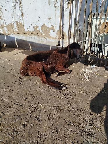Молодая овца (вероятно курдючного типа) рыжевато-коричневого окраса. Основные характеристики: - Длинные свисающие уши, широкая морда, крепкий корпус. - Плотный курчавый руношерстный покров. - Стро...