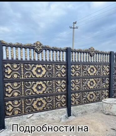 Декоративные бетонные заборы и ворота - Материал: железобетонные панели с фактурой «кирпич» и «дикий камень», фигурные верхние вставки с ажурным орнаментом. - Конструкция: секционные пролёты на ст...