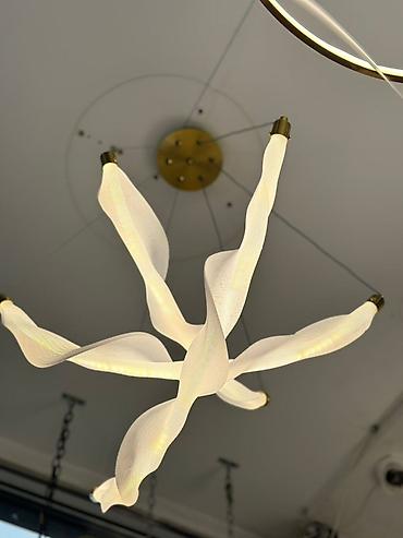- Конструкция: несколько изогнутых «лепестков» с полупрозрачным диффузором, дающим мягкое равномерное свечение