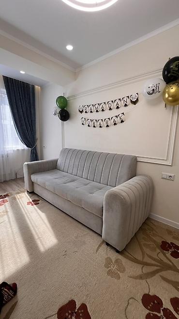 Прямой раскладной диван-кровать светло‑серого цвета. цена крават 27 Тич стол 18 тич - Механизм трансформации: выкатной/еврокнижка — сиденье выдвигается, спинка опускается, образуя ровное спальное м...