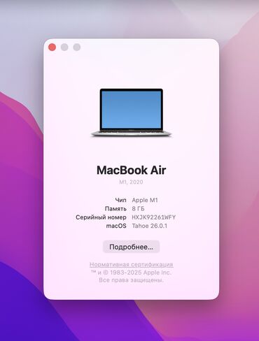 Ноутбук, Apple, 8 ГБ ОЗУ, Apple M1, 13.3 ", Б/у, Для работы, учебы, память SSD
