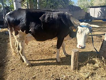 Дойная корова, рогатая, масть чёрно-пестрая. На ушах заводские бирки с номером. Крупная, широкая грудь и спина, хорошо развитое вымя с 4 сосками. Ровные конечности, крепкие копыта. Спокойный характ...