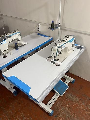 Промышленные швейные машины JACK (одноигольные прямострочные) с рабочими столами.