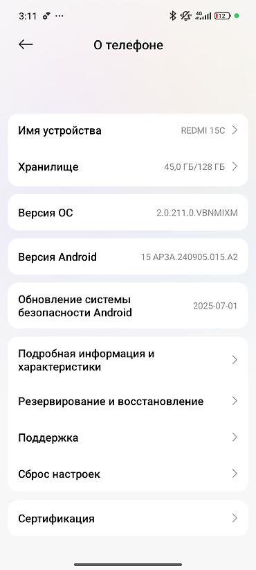 - Интерфейсы и функции системы: резервирование и восстановление, сертификация, системная поддержка (см. скрин «О телефоне»)