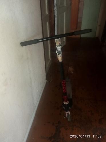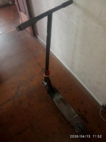 Трюковой самокат. Состояние отличное. - Цельносварная Т‑руль шириной около 55–60 см с прорезиненными грипсами. - Алюминиевая дека прямоугольной формы, ориентировочно 50–52 см рабочей поверхности, ...
