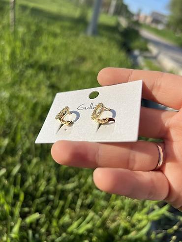 - Дизайн: мини-кольца/петельки с фактурной поверхностью, усыпанной мелкими сияющими камнями по окружности.