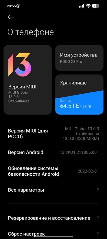 - MIUI 13 для POCO с доступом к системным функциям резервного копирования и сброса настроек, расширенным управлением памятью и энергосбережением