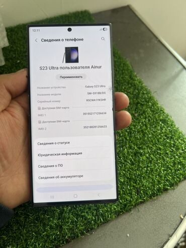 - Смартфон на платформе One UI/Android с разделами: сведения о статусе, ПО и аккумуляторе.