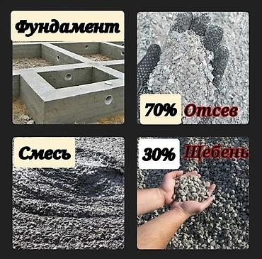 - Смеси для бетона и фундамента: рекомендованная пропорция 70% отсев + 30% щебень (наглядно на фото).