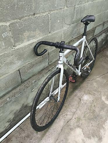 Подходит для городских поездок и трэка: жесткая алюминиевая рама, минималистичный набор компонентов, легкий ход. Рекомендуется заменить покрышку/камеру и настроить колеса перед эксплуатацией. Цвет — матовый белый с фирменными логотипами Tsunami. Размер ориентировочно средний (оценочно под рост около 170–180 см, ориентируйтесь по фото геометрии).