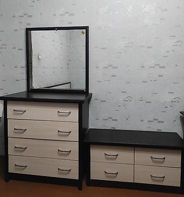 - Комод с 4 выдвижными ящиками и навесным зеркалом в рамке.