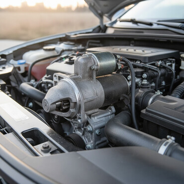 Стартер автомобильный с втягивающим реле. - Тип: электрический стартер 12 В с бендиксом и втягивающим реле на корпусе. - Конструкция: цилиндрический корпус, фланцевое крепление, шестерня бендикса ...
