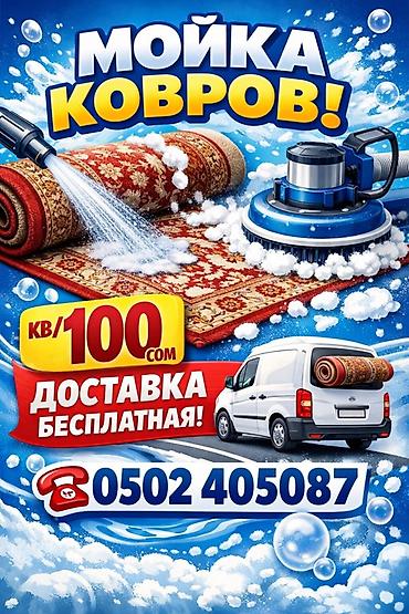 Профессиональная чистка ковров - Цена: 100 сом за кв. м (указано на изображении) - Бесплатная доставка Что делаем: - Глубокая экстракционная стирка ковров с удалением въевшейся грязи и пятен - Пр...
