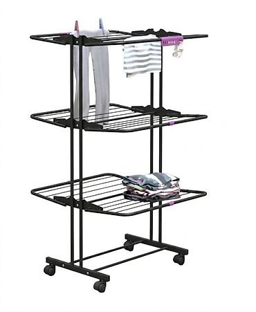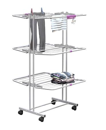 - 3 яруса с широкими решетками: одновременно помещаются полотенца, рубашки, брюки, детские вещи.
