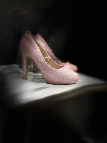 Женские туфли-лодочки с открытой пяткой и ремешком - Модель: лодочки с острым носком, открытая пятка, тонкий ремешок вокруг щиколотки с металлической пряжкой. - Цвет: шампань/светло-золотистый. - ...