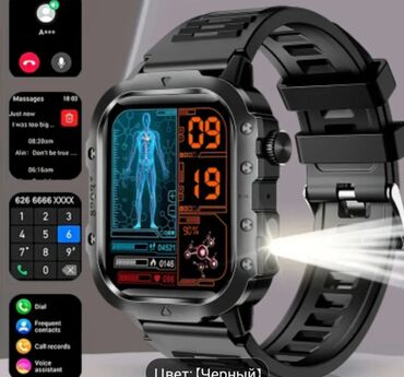 Смарт‑часы, цвет: черный. Ключевые особенности: - Прямоугольный безрамочный экран с ярким цветным дисплеем — удобно для уведомлений, времени и фитнес‑статистики. - Сенсорное управление + боковая ф...