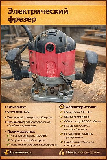 - Применение: выборка пазов и четвертей, кромочное фрезерование с копировальными кольцами/роликами, снятие фасок, фигурные профили, врезка петель, подгонка деталей мебели и столярных изделий.
